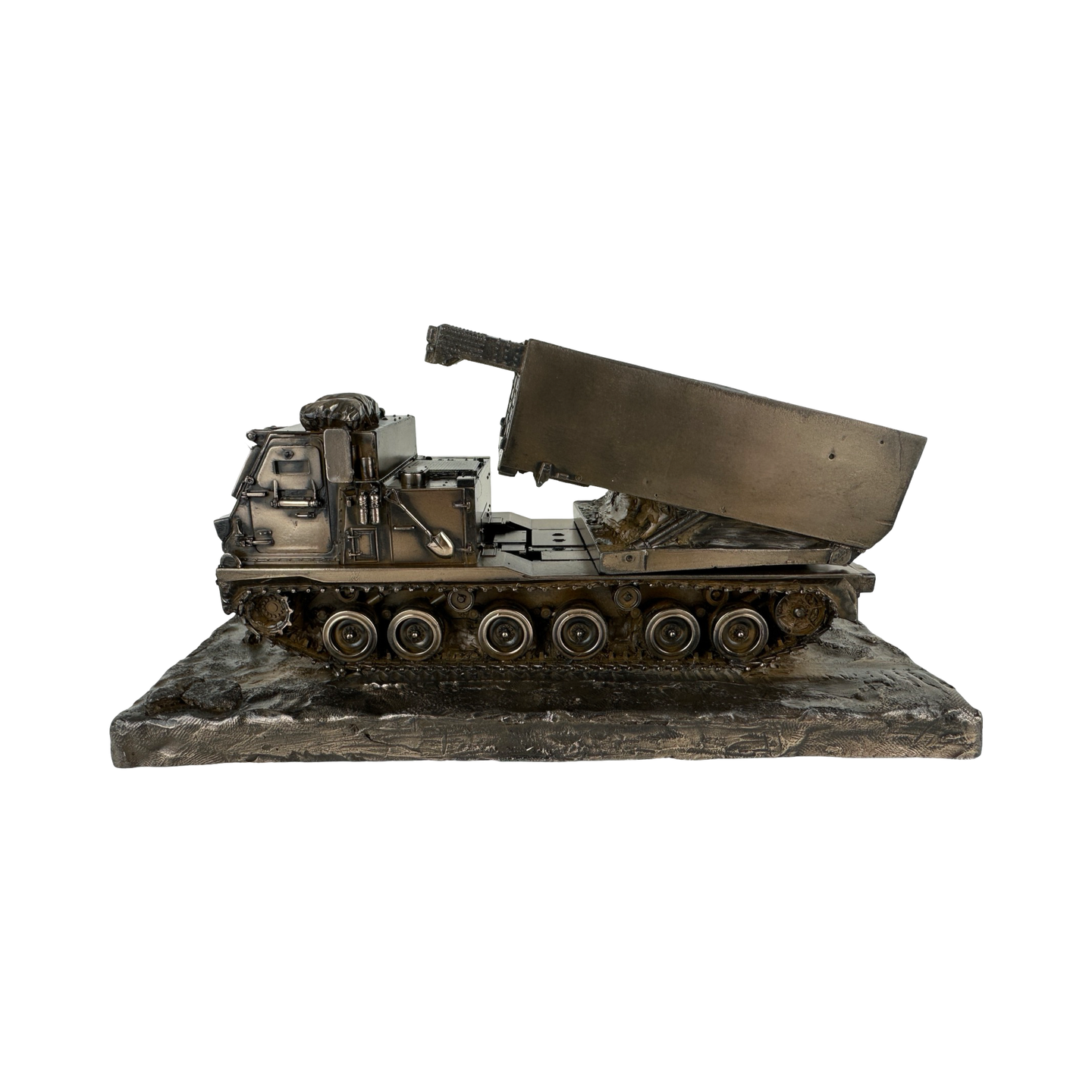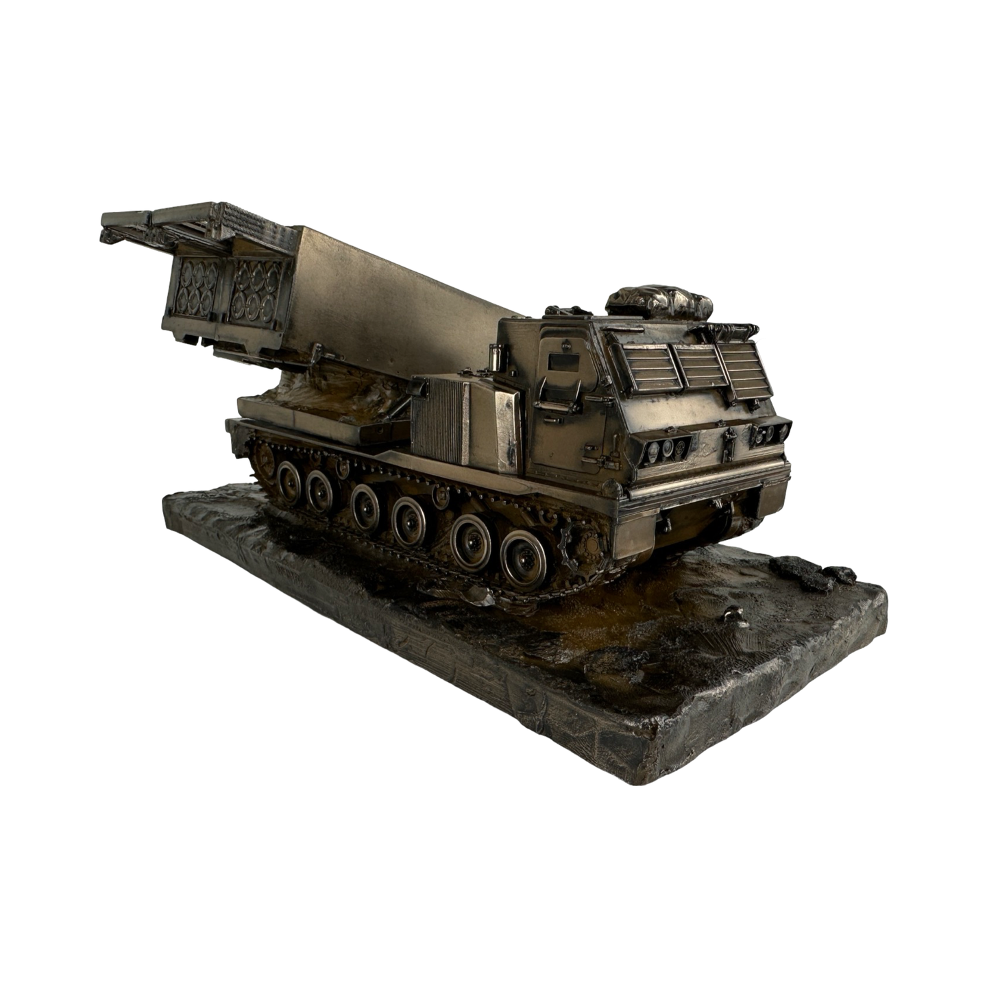 Multi launch rocket System (MLRS) cold cast bronze military statue.